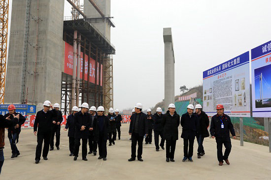 圖五、參加儀式的領(lǐng)導(dǎo)來賓參觀主橋施工現(xiàn)場