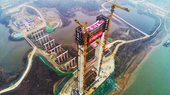大橋北主塔封頂,為大橋早日建成通車奠定堅(jiān)實(shí)基礎(chǔ)。