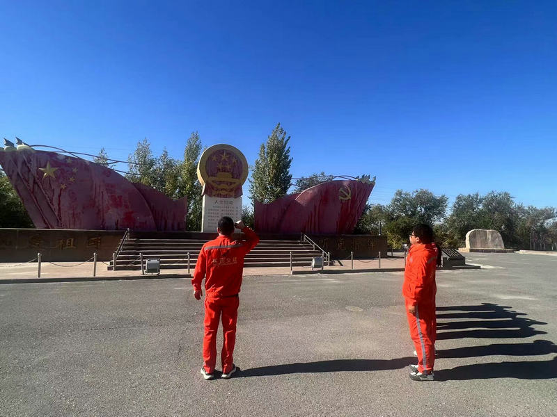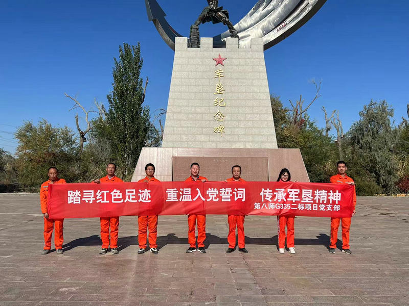 石河子訊(通訊員 穆鴻宇)近日,北新路橋集團(tuán)兵團(tuán)交建公司第八師G335二標(biāo)項目黨支部組織項目全體黨員前往駝鈴夢坡紅色教育基地,開展“黨旗映天山”主題黨日活動。大家身著整齊的工裝,胸前的黨徽在陽光下熠熠生輝,一起感受著“熱愛祖國、無私奉獻(xiàn)、艱苦創(chuàng)業(yè)、開拓進(jìn)取”的兵團(tuán)精神。