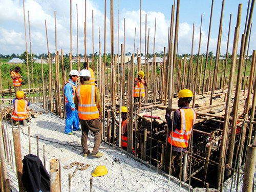 根據(jù)施工內(nèi)容和工序,首先通過勞務(wù)公司在國內(nèi)招聘有一定技術(shù)能力和實(shí)力的帶班工長64人,他們基本能夠獨(dú)立作業(yè),勝任管理和指導(dǎo)當(dāng)?shù)毓蛦T工作。其次是推進(jìn)屬地化管理工作,招用當(dāng)?shù)毓蛦T,接受中方人員的管理和指導(dǎo),施工高峰時(shí)當(dāng)?shù)毓蛦T超過2000人。