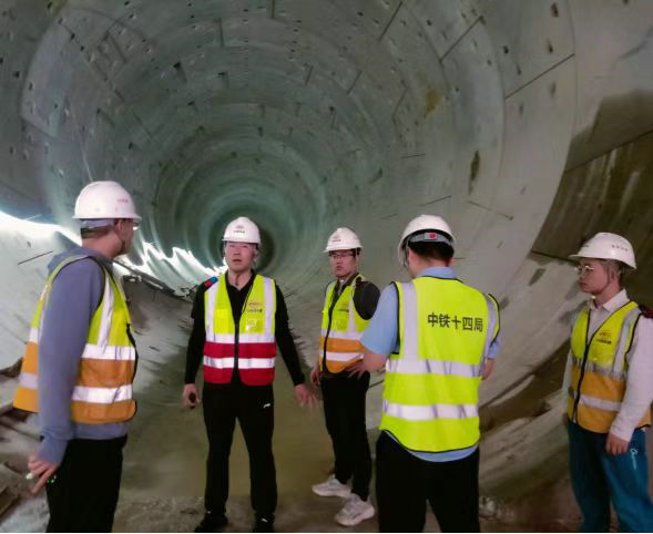 項(xiàng)目經(jīng)理阮超(左二)帶班檢查盾構(gòu)施工安全和質(zhì)量
