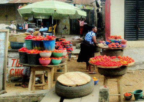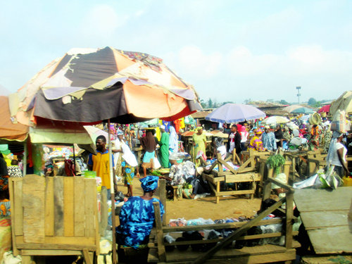 伊巴丹市場(chǎng)一角(定期有集市,市場(chǎng)中到處充滿了英語的討價(jià)還價(jià)之聲)