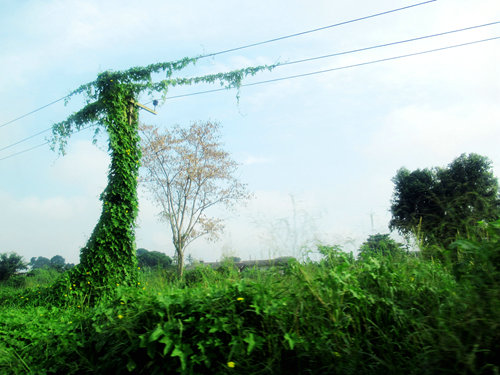 爬桿(或許在中國六七十年代可見的雜草爬電桿,在尼日利亞依然隨處可見)