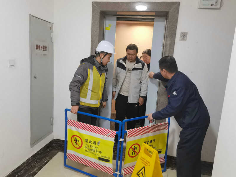 在疏散過(guò)程中,設(shè)置突發(fā)警情,有人員乘坐電梯且被困電梯,物業(yè)消防隊(duì)迅速到達(dá)現(xiàn)場(chǎng),有條不紊處理突發(fā)事件,他們爭(zhēng)分奪秒展開(kāi)行動(dòng),一邊安撫被困人員情緒,一邊利用專(zhuān)業(yè)工具破拆電梯門(mén)。經(jīng)過(guò)緊張救援,被困人員成功脫險(xiǎn),通過(guò)警情設(shè)置,也提醒了物業(yè)人員對(duì)電梯安全問(wèn)題需常抓不懈。