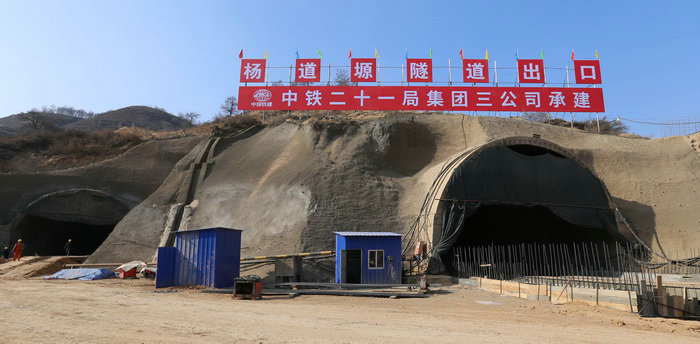 隧道二襯施工從岔口特大橋工地往山上眺望,“楊道塬隧道由中鐵二十一局三公司承建”兩排紅底白字的巨幅廣告牌,在藍(lán)天白云映襯下格外醒目,為深山里的黃土塬增添了一抹亮色。沿著陡峭的盤(pán)山便道蜿蜒上行,就是楊道塬隧道出口。洞口正在澆筑仰拱,進(jìn)入洞內(nèi),已二襯的隧道拱頂和邊墻泛著清水混凝土本色,無(wú)錯(cuò)臺(tái)和蜂窩麻面,外觀質(zhì)量好。隧道掌子面上,幾名身穿紅黃反光背心的工人在上道坑梯子上,用鐵锨鏟起拱線和拱頂?shù)狞S土。隧道施工隊(duì)負(fù)責(zé)人說(shuō):“左洞已掘進(jìn)180米,右洞120米,施工進(jìn)展順利,保證按期貫通沒(méi)有問(wèn)題。”