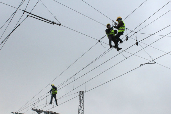 同煤岢嵐項(xiàng)目由于封鎖施工前期準(zhǔn)備工作充分,并在封鎖施工前進(jìn)行了實(shí)地演練,加之大家都抱著以此次寧岢鐵路封鎖施工為契機(jī),充分展示中鐵二十局集團(tuán)電氣化公司綜合施工能力和管理水平的目標(biāo),發(fā)揚(yáng)團(tuán)結(jié)一心、協(xié)同作戰(zhàn)的工作作風(fēng),在這次封鎖施工中,項(xiàng)目部參戰(zhàn)員工快速就位,仔細(xì)核對各項(xiàng)技術(shù)參數(shù),落實(shí)技術(shù)方案,統(tǒng)籌部署各項(xiàng)工作,確保各個(gè)施工環(huán)節(jié)的時(shí)點(diǎn)控制責(zé)任到崗、精確到人。各施工作業(yè)隊(duì)人員克服作業(yè)面小、工程量大、施工環(huán)節(jié)復(fù)雜等困難,迅速投入到封鎖施工當(dāng)中。他們兵分三路,防護(hù)、吊裝、拆除交叉作業(yè),嚴(yán)格按照預(yù)定方案進(jìn)行,確保封鎖期間的人員、設(shè)備安全。經(jīng)過緊張、有序的150分鐘封鎖施工,安全、正點(diǎn)地圓滿完成任務(wù)。