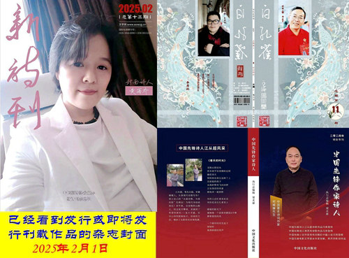 三、《中國先鋒作家詩人》是由甘肅文學(xué)網(wǎng)主辦,《先鋒詩人網(wǎng)絡(luò)詩選》微信詩刊協(xié)辦的純詩歌交流刊物,現(xiàn)定為季刊。由于征稿和評選出版的緣故,征文期限為三個月一季,旨在發(fā)掘和推廣全國范圍內(nèi)高質(zhì)量的詩歌作品,打造國內(nèi)一流的詩人、作家平臺。在《中國先鋒作家詩人》2024年特別專刊(2025年春節(jié)后發(fā)行)上,刊登有《一雙鐵手擎巨筆(現(xiàn)代詩)——讀<不朽的軍魂·人物風(fēng)采卷>有感》《鐵腳趟過南疆的硝煙(現(xiàn)代詩)——讀姚尚明著<南疆硝煙>有感》《為了那段不朽的履歷(現(xiàn)代詩)——讀姚尚明<中原筑路>有感》《鐵手書寫履歷(現(xiàn)代詩)——讀陳巽之<苔花米小牡丹開>有感》《李白哼出新曲(現(xiàn)代詩)——讀陳巽之<鴻爪雪泥集>有感》《風(fēng)雨里感悟人生(現(xiàn)代詩)——讀向溫華<風(fēng)雨人生>有感》《鐵兵人,就喝鐵兵頌酒(現(xiàn)代詩)》《青春年華十四載(現(xiàn)代詩)——讀郭冠杰主編<大地做紙寫春秋>有感》《埋頭將文字排列成行(現(xiàn)代詩)——讀謝克強(qiáng)<藝術(shù)之光>有感》《尋光之旅(現(xiàn)代詩)——讀謝克強(qiáng)<尋找詞的光芒>有感》《堅持在詩海中航行(現(xiàn)代詩)——讀鄒敢昆<萬里行吟>有感(二)》和《難忘入黨時……(現(xiàn)代詩)》共12首詩歌作品。