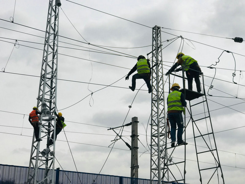 據(jù)悉,從9:25時(shí)到11:55時(shí),在電氣化公司安質(zhì)部部長張華、安質(zhì)部高工趙秀紅和業(yè)主代表、總監(jiān)、安塘站等領(lǐng)導(dǎo)以及項(xiàng)目領(lǐng)導(dǎo)班子的指導(dǎo)和盯控下,現(xiàn)場管理人員與施工人員齊心協(xié)力,爭分奪秒,克服作業(yè)面窄小,交叉施工多,既有線安全風(fēng)險(xiǎn)高,施工難度大等諸多困難。經(jīng)過了150分鐘的有序施工,完成接觸網(wǎng)支柱組立5根,倒錨1處,軟橫跨架設(shè)2組,回流線間架安裝及倒安子3處,拆除既有鋼柱2根,使節(jié)點(diǎn)目標(biāo)節(jié)節(jié)兌現(xiàn),打了一場漂亮的攻堅(jiān)仗,在有限的時(shí)間內(nèi)順利完成了本次天窗施工任務(wù)。施工完畢后,項(xiàng)目安全防護(hù)員對現(xiàn)場內(nèi)外進(jìn)行仔細(xì)檢查確認(rèn),對施工廢棄物、遺留工具或垃圾及時(shí)清理干凈,組織人員安全撤出,為本次天窗施工畫上圓滿的句號。