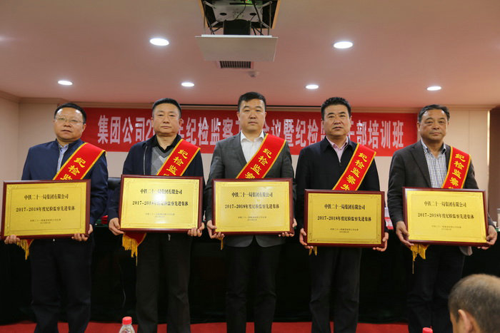 會議還對集團公司2017-2018年紀檢監(jiān)察先進集體和優(yōu)秀紀檢監(jiān)察干部進行了表彰并頒發(fā)獎牌和榮譽證書,其中三公司紀委獲集團公司紀檢監(jiān)察工作先進單位榮譽稱號,一名個人獲集團公司優(yōu)秀紀檢監(jiān)察干部榮譽稱號。