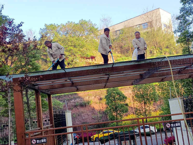 在清洗作業(yè)當天,物業(yè)保潔團隊穿著統(tǒng)一的工作服,佩戴著必要的安全裝備,迅速開展工作。保潔人員分工明確,一些人負責使用水管清洗玻璃頂棚表面的灰塵和雜物,強大的水流迅速將污垢沖刷干凈;而另一些人則手持清潔工具,細致地清除玻璃上的頑固污漬,不遺漏任何一處細節(jié)。