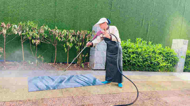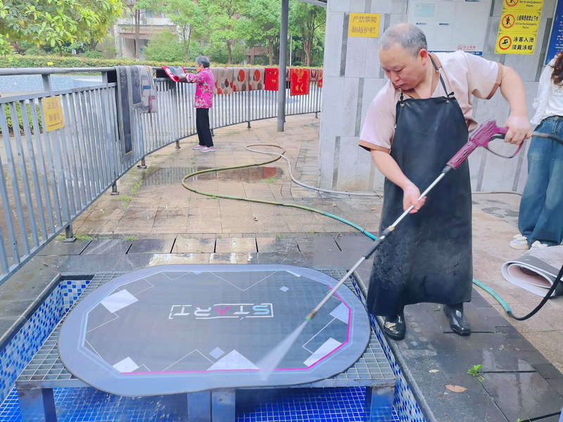 活動當天,物業(yè)工作人員早早布置好沖洗區(qū)域,配備高壓水槍、刷子、清潔劑等工具,有序為業(yè)主提供地墊深度清潔服務。從除塵去污到?jīng)_洗晾曬,工作人員細致周到的服務讓不少業(yè)主感嘆:“平時地墊厚重難清洗,物業(yè)這次真是想到我們心坎里了!”活動現(xiàn)場還設置了便民休息區(qū),進一步拉近了與業(yè)主的距離。