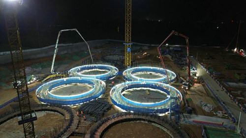 當日下午15:30淺圓倉Q303、Q304、Q203、Q204開始進行混凝土澆筑,晚上22:00滑模裝置順利滑升至預定高度,且各項技術指標均達到設計要求,施工中,項目團隊嚴格按照施工方案進行操作,精心組織、周密部署。此次首滑成功不僅驗證了滑模施工技術經驗,也為后續(xù)大面積滑模施工積累了寶貴經驗。