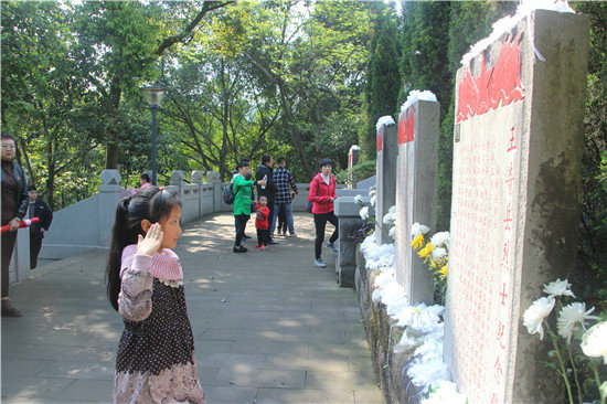 “向英烈致敬,學英烈事跡,英烈們永垂不朽”。一名來自綦江某小學的學生面對烈士墓碑舉起右手端正莊嚴行著標準的少先隊隊禮,用稚嫩的話語和真情感動著前來參與祭掃的路人駐足圍觀,這個特殊的少先隊隊禮格外搶眼,博得陣陣掌聲。少年強則中國強,小學生亦是如此崇拜英烈,她的舉動也成了今日祭掃活動中一大亮點。
