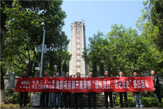 重慶訊(胡天佑 田輝)4月5日清明節(jié),中鐵二十一局五公司渝黔項目黨支部在重慶綦江區(qū)烈士陵園舉行“緬懷英烈、銘記歷史”祭掃活動,項目黨支部10名黨員和2名勞務隊黨員代表參加祭掃活動。