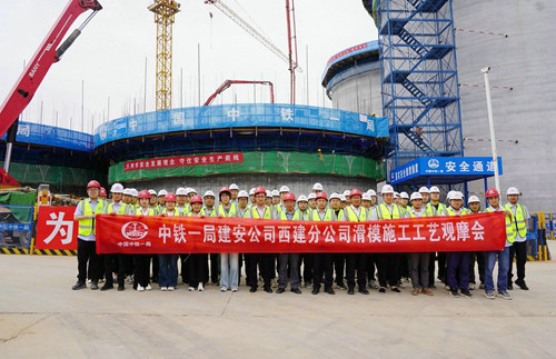 (西安訊)5月14日,中鐵一局建安公司西安建筑分公司在西安農(nóng)投15萬(wàn)噸綜合性糧食倉(cāng)儲(chǔ)基地(藍(lán)田)項(xiàng)目順利舉辦滑模施工工藝現(xiàn)場(chǎng)觀摩會(huì)。公司相關(guān)部門負(fù)責(zé)人及專家組成員,分公司領(lǐng)導(dǎo)以及項(xiàng)目部負(fù)責(zé)人、各項(xiàng)目安全、技術(shù)管理人員代表共計(jì)50人參加活動(dòng)。