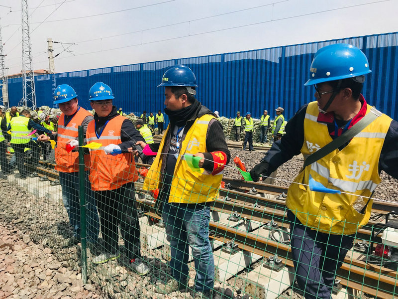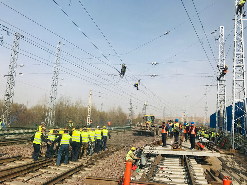 另悉,此次封鎖施工,是該項(xiàng)目封鎖施工開展以來(lái),用工量最多一次站改施工。為確保施工安全正點(diǎn),他們嚴(yán)格按照既定施工方案及專項(xiàng)安全防護(hù)方案進(jìn)行封鎖施工,人員、機(jī)械、設(shè)備在封鎖前兩小時(shí)就位準(zhǔn)備。封鎖施工命令下達(dá)后,210余名參戰(zhàn)人員快速就位,仔細(xì)核對(duì)各項(xiàng)技術(shù)參數(shù),落實(shí)技術(shù)方案,統(tǒng)籌部署各項(xiàng)工作,確保各個(gè)施工環(huán)節(jié)的時(shí)點(diǎn)控制責(zé)任到崗、精確到人。各施工作業(yè)隊(duì)人員克服作業(yè)面小、工程量大、施工環(huán)節(jié)復(fù)雜等困難,迅速投入到封鎖施工當(dāng)中。他們吊枕、扒砟、拆除道岔及線路、橫移道岔、回砟、搗固、防護(hù)等一系列交叉作業(yè),各道工序都嚴(yán)格按照預(yù)定方案完成,施工過(guò)程防護(hù)到位、安全可控,人員、機(jī)械作業(yè)有條不紊、相互配合。這樣經(jīng)過(guò)180分鐘安全、緊張、有序、正點(diǎn)地完成了第七階段封鎖施工任務(wù)。