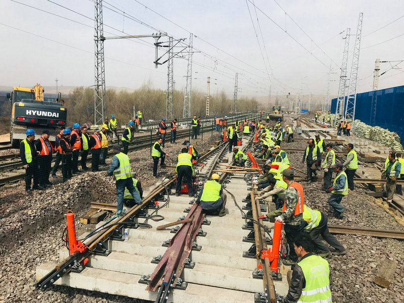 中國(guó)鐵路工程建設(shè)網(wǎng)太原訊(記者張明)4月18日12:00時(shí),經(jīng)過(guò)180分鐘“天窗點(diǎn)”,中鐵二十局集團(tuán)電氣化公司同煤岢嵐鐵路項(xiàng)目寧岢鐵路安塘站新插道岔就位。至此,第七次Ⅲ級(jí)封鎖施工任務(wù)順利完成,為新微機(jī)聯(lián)鎖開通打下良好基礎(chǔ)。
