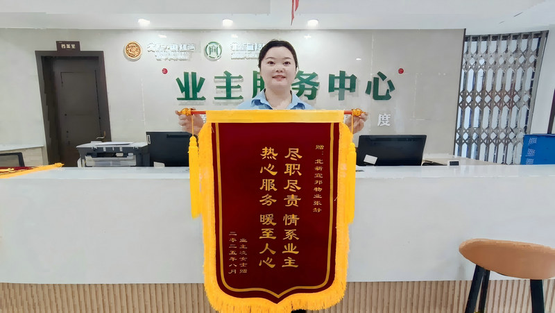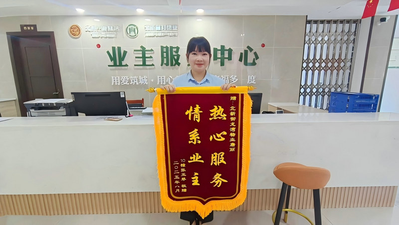 重慶合川訊(通訊員 楊雅茜)9月1日,北新宜邦物業(yè)御龍灣項(xiàng)目八街區(qū)物業(yè)服務(wù)大廳暖意濃濃。10棟業(yè)主張女士、8棟業(yè)主凌女士分別將寫有“熱心服務(wù) 情系業(yè)主”“盡職盡責(zé) 情系業(yè)主 熱心服務(wù) 暖至人心”的錦旗,送到樓棟管家唐麗、張靜手中,以此感謝她們的貼心服務(wù)。