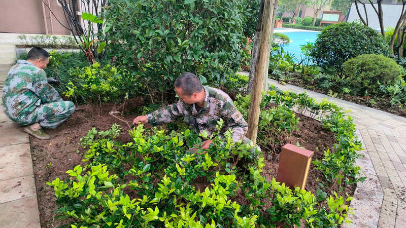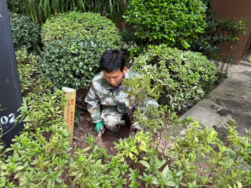 施工中,物業(yè)工作人員以“分區(qū)負(fù)責(zé)、專業(yè)協(xié)作”模式高效推進。先行疏松土壤,為植物生長打牢基礎(chǔ),結(jié)合區(qū)域光照、濕度等微環(huán)境規(guī)劃布局,最后嚴(yán)格按規(guī)范操作保障成活率并跟進澆水、固定等后續(xù)管理,全過程兼顧生態(tài)平衡與景觀美學(xué),盡顯物業(yè)服務(wù)精細(xì)化水平。