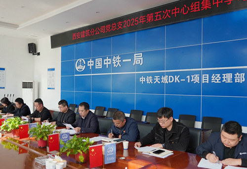 (西安訊)11月26日,中鐵一局建安公司西安建筑分公司黨總支在中鐵天域項目會議室組織召開第五次中心組集中學(xué)習(xí)會議。公司宣團(tuán)工作部部長秦雷卜到會督學(xué),分公司領(lǐng)導(dǎo)班子全體成員參加學(xué)習(xí)。