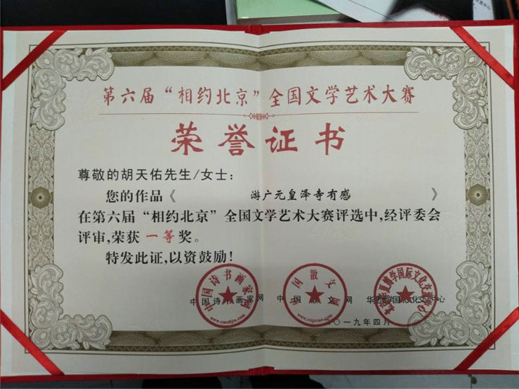 本網(wǎng)訊重慶訊(田輝)近日,中鐵二十一局五公司渝黔項(xiàng)目部傳來(lái)喜訊,該項(xiàng)目書(shū)記胡天佑的作品《游廣元皇澤寺有感》在參加2019年第六屆“相約北京”全國(guó)文學(xué)藝術(shù)大賽評(píng)選中以較高的文藝水準(zhǔn)脫穎而出喜獲一等獎(jiǎng),并授予“全國(guó)文藝創(chuàng)作精英”榮譽(yù)稱號(hào)。