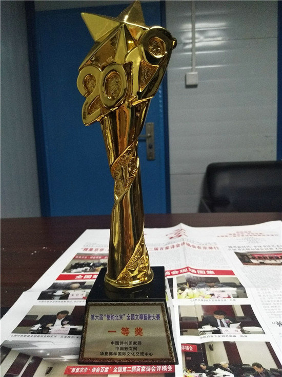 2019年第六屆“相約北京”全國(guó)文學(xué)藝術(shù)大賽由中國(guó)詩(shī)書(shū)畫家網(wǎng)、中國(guó)散文網(wǎng)、華夏博學(xué)國(guó)際文化交流中心主辦,4月26日至29日在北京舉行頒獎(jiǎng)儀式,中國(guó)人民解放軍原濟(jì)南軍區(qū)副司令員、濟(jì)南空軍司令員、解放軍中將郭玉祥;全國(guó)政協(xié)原副秘書(shū)長(zhǎng)、全國(guó)政協(xié)港澳臺(tái)僑委員會(huì)原副主任、著名書(shū)法家張道誠(chéng);中國(guó)音樂(lè)文學(xué)學(xué)會(huì)副主席、原北京軍區(qū)政治部創(chuàng)作室主任、國(guó)家一級(jí)詞作家石祥;原國(guó)家工商總局公平交易局副局長(zhǎng)、國(guó)家工商總局老干部辦公室主任、中央國(guó)家機(jī)關(guān)書(shū)法家協(xié)會(huì)副秘書(shū)長(zhǎng)李文章;中國(guó)美術(shù)家協(xié)會(huì)理事、中國(guó)華僑畫院院長(zhǎng)、國(guó)家一級(jí)美術(shù)師張清智;中國(guó)美術(shù)家協(xié)會(huì)理事、中國(guó)國(guó)家博物館書(shū)畫研究創(chuàng)作中心主任、國(guó)家一級(jí)美術(shù)師石峰;中國(guó)紅十字書(shū)畫院執(zhí)行院長(zhǎng)、北京藝術(shù)藝術(shù)創(chuàng)作中心常務(wù)副主任王建勛;中國(guó)硬筆書(shū)法協(xié)會(huì)副秘書(shū)長(zhǎng)、中國(guó)詩(shī)書(shū)畫家網(wǎng)總編輯、《羲之書(shū)畫報(bào)》社副總編輯邵建國(guó)等領(lǐng)導(dǎo)專家出席大會(huì)。