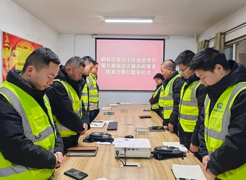 (西安訊)12月13日,是第12個(gè)南京大屠殺死難者國(guó)家公祭日,為深切緬懷南京大屠殺死難同胞,銘記歷史苦難,厚植廣大黨員干部愛國(guó)情懷與時(shí)代擔(dān)當(dāng),建安公司西安建筑分公司組織所屬的10個(gè)項(xiàng)目約150余人開展了南京大屠殺死難者國(guó)家公祭日集中默哀活動(dòng)。