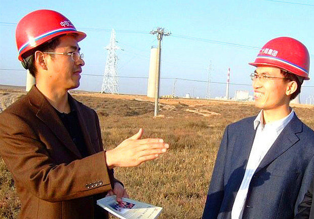公司董事長、總經(jīng)理王志義(左)、黨委副書記、紀委書記(主持黨委工作)邵紅軍討論工作的情景