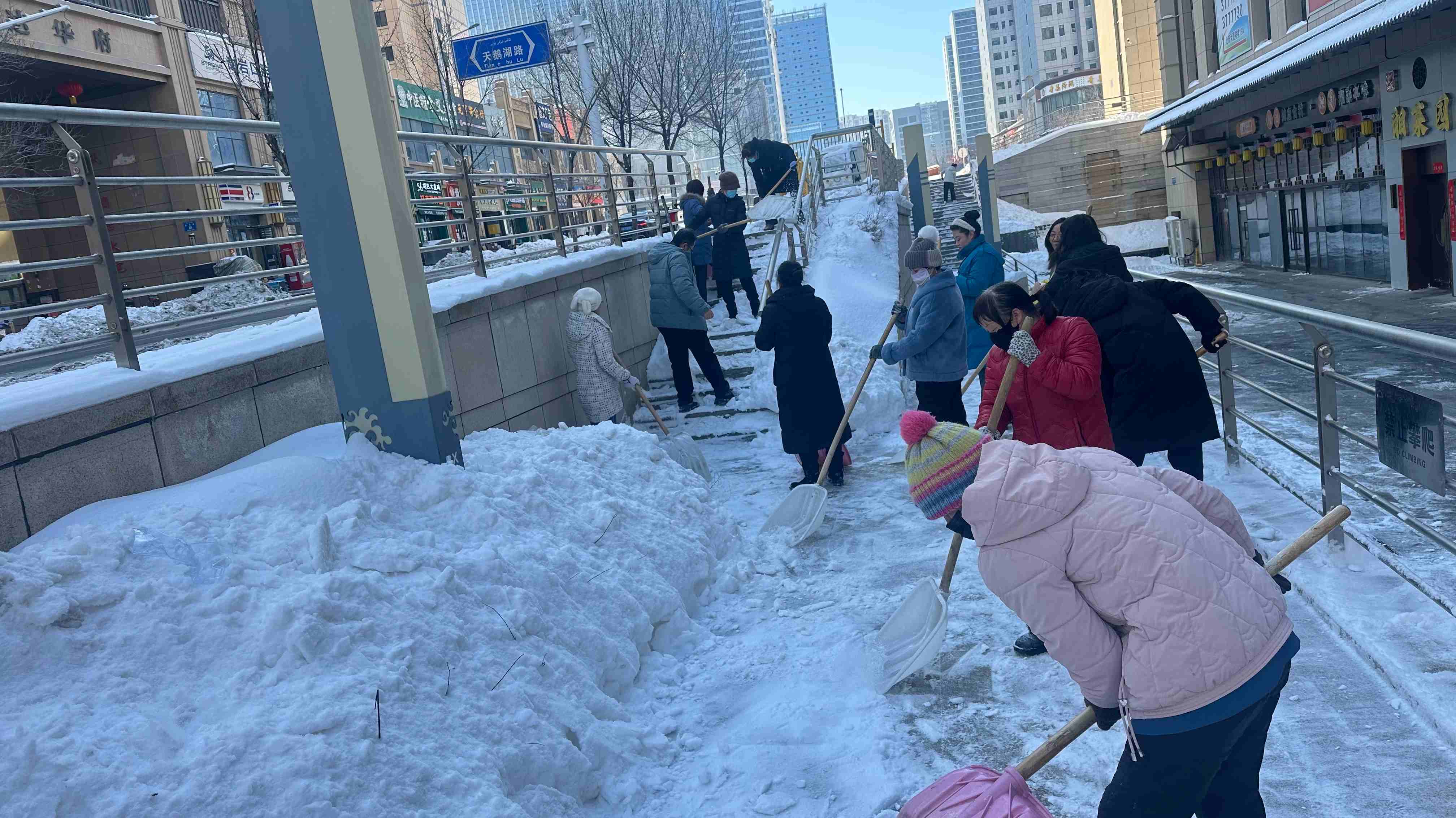 從清晨到午后,從11日到13日,清雪隊(duì)伍連續(xù)作戰(zhàn)。剛剛清理干凈的路面遇持續(xù)降雪反復(fù)覆蓋,大家便反復(fù)清掃、循環(huán)補(bǔ)清,堅(jiān)決做到隨下隨清、雪停路凈。保潔大姐彎腰鏟除死角堅(jiān)冰,客服姑娘合力推運(yùn)積雪,大家齊心協(xié)力,主動(dòng)補(bǔ)位支援,彼此鼓勁、默契配合,用柔弱肩膀扛起清雪重任,用實(shí)干守護(hù)樓宇安全。