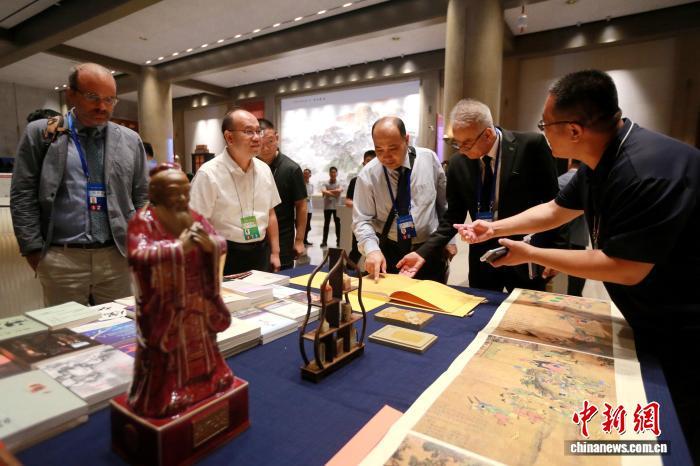 2025年7月9日,山東曲阜,中外嘉賓閱覽儒家典籍,賞鑒文創(chuàng)產(chǎn)品。當(dāng)天,第十一屆尼山世界文明論壇在山東曲阜啟幕,共有70多個國家的560余位嘉賓參會。梁犇 攝