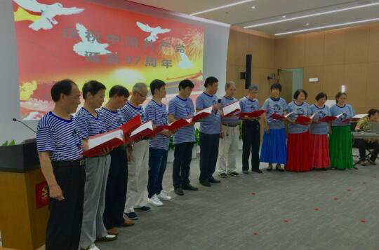 圖四、上海地鐵302標(biāo)項(xiàng)目部員工積極融入到當(dāng)?shù)厣鐓^(qū)慶祝建黨97周年活動(dòng)中來,詩(shī)朗誦《贊歌獻(xiàn)給黨》