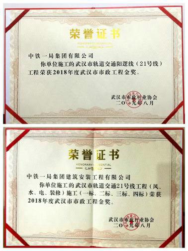 據(jù)悉,此前建安公司武漢市軌道交通21號線風水電裝修項目和武湖停車場及倒水河車輛段綜合工程項目,還雙雙被武漢地鐵集團有限公司授予“先進單位”榮譽稱號。