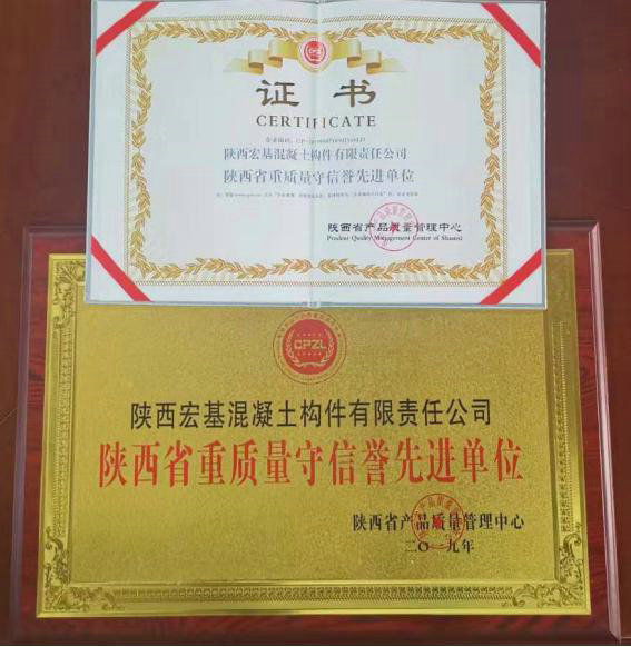 陜西省重質(zhì)量創(chuàng)品牌示范單位榮譽