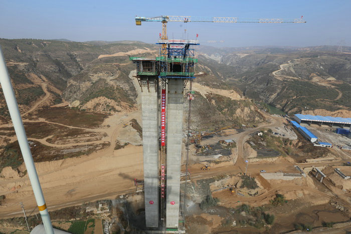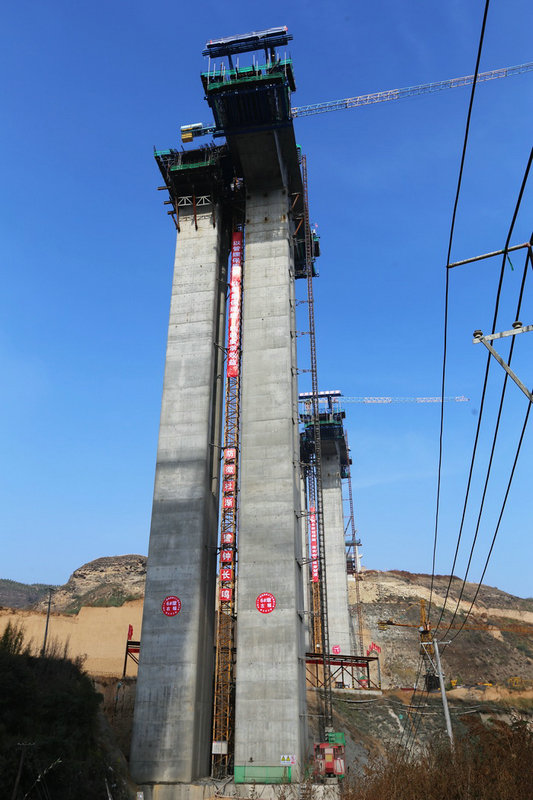 國(guó)道336神木店張公路四支河特大橋主墩橋面至地面101.5米