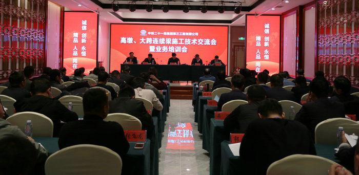 隨后,分別由神木店張項(xiàng)目部總工鄒森作了《四支河大橋高墩大跨連續(xù)梁鋼構(gòu)橋施工技術(shù)》交流;合銅高速項(xiàng)目部總工牛六喜作了《大峪河特大橋高墩大跨連續(xù)鋼構(gòu)技術(shù)質(zhì)量控制》交流;貴南鐵路項(xiàng)目部工程部長(zhǎng)楊翼作了《巖溶樁基施工技術(shù)》交流;公司工程管理部部長(zhǎng)宋小軍作了《橋梁高標(biāo)號(hào)、高泵送混凝土施工難題攻克啟示》交流;公司測(cè)試中心主任副主任吳程輝作了《高墩大跨度連續(xù)梁混凝土質(zhì)量控制技術(shù)》交流,晚上8時(shí)至10時(shí),公司測(cè)試中心主任謝光明作了《混凝土實(shí)體質(zhì)量常見(jiàn)問(wèn)題分析與解決》的試驗(yàn)專項(xiàng)培訓(xùn)。