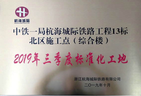 中鐵一局建安公司杭海城際鐵路項(xiàng)目在三季度“兩美”浙江立功競賽中獲得多項(xiàng)榮譽(yù)