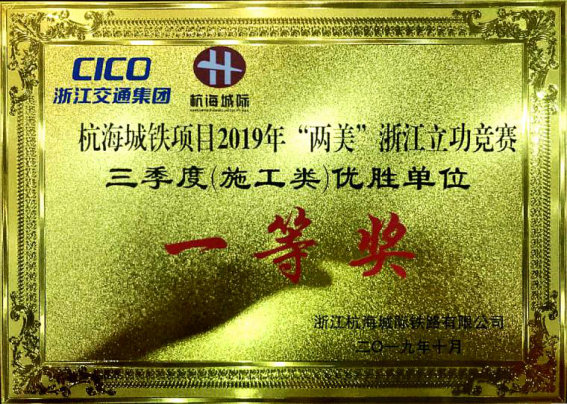 2019年“兩美”浙江立功競賽三季度(施工類)一等獎(jiǎng)