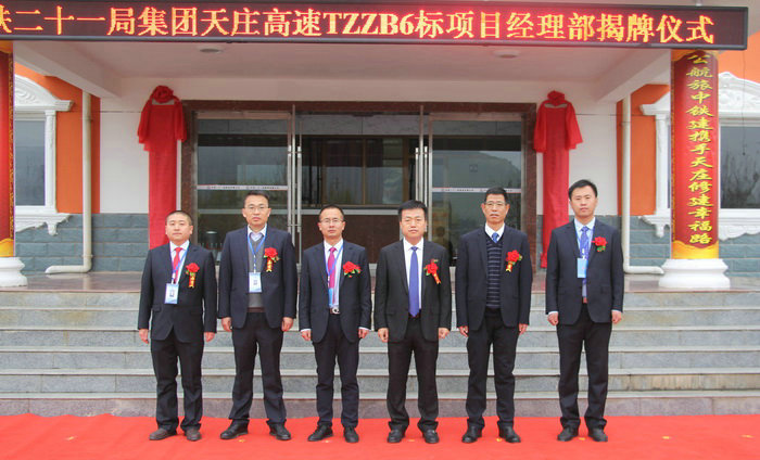 揭牌儀式上,中鐵二十一局集團天莊高速TZZB6標項目總工趙強向大家介紹了項目工程概況。項目常務副經理柳吉煥宣讀項目成立文件,并代表項目部鄭重承諾:在今后的項目建設中將始終秉承“逢山鑿路,遇水架橋,鐵道兵前無險阻;風餐露宿,沐雨櫛風,鐵道兵前無困難”的鐵道兵精神,按照“團隊協(xié)作、永爭第一”的目標要求,以及精益求精的工匠精神,抓征地拆遷,確保標段率先開工;抓安全生產,確保平安工地建設;抓工程質量,確保創(chuàng)建品質工程;抓環(huán)水保管理,確保綠色生態(tài)文明;抓工期管理,確保項目按期完工;抓基層黨建和反腐倡廉,確工程優(yōu)質隊伍優(yōu)秀干部優(yōu)良。堅決按照“高起點準備、高效率施工、高標準建成”的要求履行好駐地央企社會責任,建設好家門口工程。