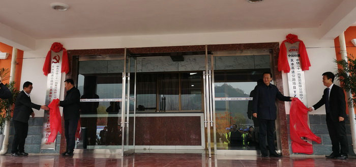 隨后,在煙花禮炮聲及現(xiàn)場貴賓、嘉賓及項目部全體職工、工區(qū)代表等壹百多人的見證下,清水縣縣委副書記、縣長馬越垠、公航旅天莊公司總經理辛延甫、清水縣縣委常委、副縣長秦永斌、中鐵二十一局三公司副總經理魏惠民共同為中鐵二十一局集團天莊高速總包(TZZB)6標項目部揭牌。揭牌儀式結束后,項目部組織出席揭牌儀式的各位貴賓、嘉賓參觀了項目部駐地,并組織觀看了企業(yè)宣傳片。