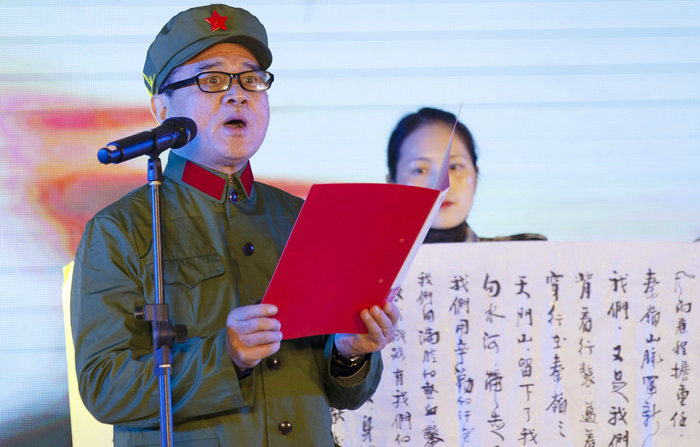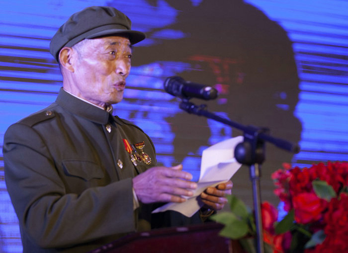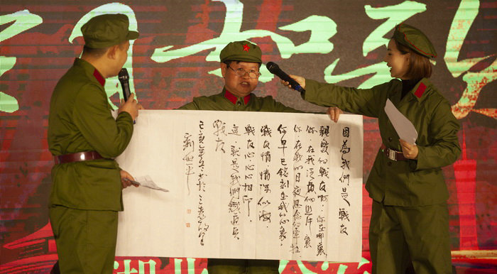 首先由來(lái)自西安的學(xué)兵張群芳、葉維娜、徐慧、任萱、王淑玲、李爽6人表演開(kāi)場(chǎng)舞《最美是你》,一襲紅色的長(zhǎng)裙,靈活的身段、輕盈的舞姿贏得了熱烈的掌聲,將文娛演出推向了第一個(gè)高潮。隨后,由原鐵道兵第十師48團(tuán)汽車二連指導(dǎo)員、團(tuán)湖北省委副書(shū)記、湖北省青年聯(lián)合會(huì)主席楊澤林會(huì)長(zhǎng)致辭、汪正茂副會(huì)長(zhǎng)講話、鐵道兵二師戰(zhàn)友聯(lián)誼會(huì)秘書(shū)長(zhǎng)張集臣致賀詞、原50團(tuán)機(jī)關(guān)電影組、湖南常德鐵道兵十師戰(zhàn)友聯(lián)誼會(huì)會(huì)長(zhǎng)勞新國(guó)講話、荊州市沙市鐵道兵第十師48團(tuán)戰(zhàn)友聯(lián)誼會(huì)副會(huì)長(zhǎng)兼秘書(shū)長(zhǎng)劉昌林講話。接下來(lái)由慶典公司人員王軍演唱《當(dāng)兵的人》;原48團(tuán)汽車連老戰(zhàn)友肖文斌詩(shī)朗誦《我們是鐵道兵》;原48團(tuán)10連文書(shū)劉世平戰(zhàn)友同時(shí)現(xiàn)場(chǎng)表演書(shū)法;西安學(xué)兵李爽、王淑玲女聲演唱《大紅棗兒甜又香》;原48團(tuán)宣傳隊(duì)?wèi)?zhàn)友沈方茂板胡獨(dú)奏《春來(lái)早》;女聲獨(dú)唱《節(jié)日歡歌》,表演者王淑玲;男女聲二重唱《為了誰(shuí)》,表演者原48團(tuán)宣傳干事張運(yùn)茂、西安女學(xué)兵王淑玲。