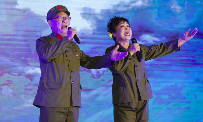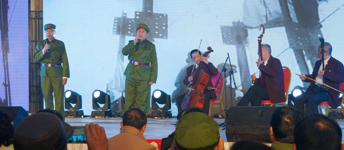 為了活躍氣氛,文娛演出節(jié)目穿插進(jìn)行。副會(huì)長(zhǎng)、原鐵道兵第十師48團(tuán)副參謀長(zhǎng)、原中鐵二十一局三公司副處長(zhǎng)楊德榮宣讀由1982年入伍的甘肅平?jīng)黾畱?zhàn)友、現(xiàn)中鐵二十一局三公司干部胡志超等戰(zhàn)友發(fā)來(lái)的賀電賀信;華銘悅大酒店員工表演舞蹈《美美噠》,為聯(lián)誼會(huì)助興。原鐵道兵第十師48團(tuán)四川樂(lè)山市犍為籍戰(zhàn)友、現(xiàn)中國(guó)鐵道建筑報(bào)記者尹登明、原鐵道兵第十師48團(tuán)宣傳隊(duì)老戰(zhàn)友王哲平演唱《駿馬奔馳保邊疆》;西安女學(xué)兵任萱、徐慧表演陜西快板《四大嫂贊鐵兵》;原鐵道兵第十師48團(tuán)宣傳隊(duì)劉大勇、沈方茂、任祖華表演民樂(lè)合奏《紅歌聯(lián)奏》;原鐵道兵第十師48團(tuán)宣傳股干事任祖榮朗誦毛主席詩(shī)詞《沁園春·雪》;西安學(xué)兵任萱、張群芳、葉維娜、徐慧、王淑玲、李爽等表演舞蹈《洗衣歌》;公安籍戰(zhàn)友、執(zhí)行會(huì)長(zhǎng)賀正海作總結(jié)講話。華銘悅大酒店朱遠(yuǎn)松表演獨(dú)唱《再見(jiàn)了大別山》;王淑玲、李爽二重唱《孤獨(dú)的牧羊人》;最后是大合唱《我和我的祖國(guó)》,由任萱、張群芳、葉維娜、徐慧、王淑玲、李爽領(lǐng)唱,全體演員謝幕。
