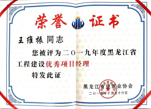俯首工程路,省內(nèi)揚美名。35歲,正值風(fēng)華正茂書生意氣,對于家庭美滿、事業(yè)有成的他來說,盼望自己付出心血的工程獲得獎項是他多年的夢想。付出終有回報,他主要負(fù)責(zé)的學(xué)府街公鐵立交市政工程獲得了2018年度黑龍江省建設(shè)工程“龍江杯”獎,讓他第一次在黑龍江省建筑行業(yè)上露了臉;2019年12月21日,黑龍江省建筑行業(yè)企業(yè)家2019年年會暨年度總結(jié)表彰大會上的喜訊讓他再一次站在了黑龍江省建筑行業(yè)的舞臺上,榮獲2019年度黑龍江省工程建設(shè)優(yōu)秀項目經(jīng)理是對他成績的肯定,更是對這個年輕的市政工程項目經(jīng)理的鼓舞,讓他對工程建設(shè)更充滿激情與活力。