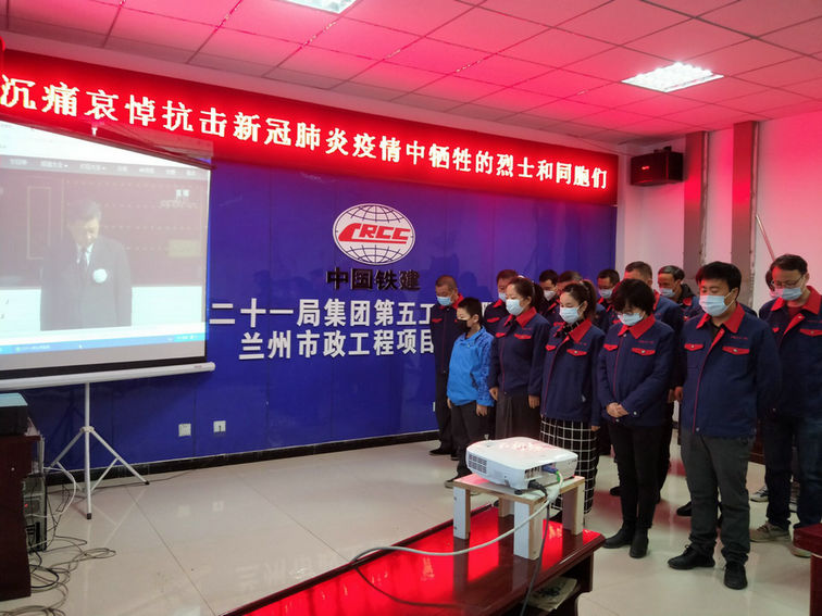 4月4日中鐵二十一局五公司蘭州市政項(xiàng)目部廣大職工哀悼疫情烈士和逝世同胞。