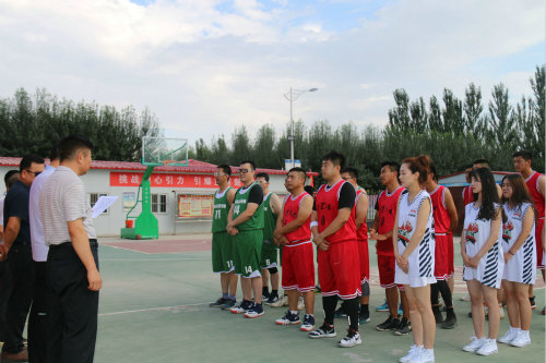 圖二、寧夏公路建設(shè)管理局副局長(zhǎng)馬洪林致開(kāi)幕詞 揭幕戰(zhàn)首先在寧夏公路建設(shè)管理局和中鐵建大橋局京藏14標(biāo)之間展開(kāi),經(jīng)過(guò)激烈角逐,最終比分定格在37:32,京藏14標(biāo)作為首屆京藏杯籃球賽冠軍以及主場(chǎng)作戰(zhàn)優(yōu)勢(shì),以5分優(yōu)勢(shì)小勝取得開(kāi)門紅。