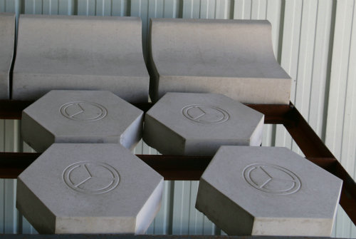 圖一、小型預(yù)制構(gòu)件成品 在路面1標(biāo),像湯建偉一樣將預(yù)制件誤認(rèn)成大理石的情況時(shí)常發(fā)生。進(jìn)場(chǎng)初期,面對(duì)小型構(gòu)件預(yù)制工程量大,施工生產(chǎn)任務(wù)重,工期緊帶來的難題,該項(xiàng)目部組織技術(shù)人員自主設(shè)計(jì)、研發(fā)出一條集機(jī)械化生產(chǎn)和智能噴淋養(yǎng)生于一體的“集約型”生產(chǎn)線,實(shí)現(xiàn)了“雙向布料、快速入模、自動(dòng)振搗、智能養(yǎng)生、分工清模”一條線。不但保證了預(yù)制件的品質(zhì),節(jié)約了建設(shè)成本,提高了生產(chǎn)效率,而且生產(chǎn)出的構(gòu)件成品外觀和普通的大理石相差無幾。