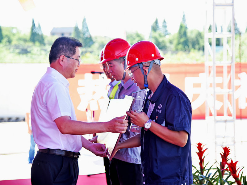 當日,出席參加軌通活動的人員有:浙江省交通集團軌道交通管理部副總經(jīng)理陳明,浙江杭海城際鐵路有限公司黨委書記、董事長董衛(wèi)國和總經(jīng)理言建標、中鐵三局集團華東區(qū)域常務副指揮長張弘鵬、中鐵三局集團線橋工程有限公司副總經(jīng)理歐陽飛飛等相關單位的負責人?;顒又?,言建標代表業(yè)主單位致辭,表揚了杭海城際鐵路全體參建將士的辛勤付出與努力,對中鐵三局線橋公司始終保持昂揚向上并按期完成施工任務的積極態(tài)度給與充分肯定,望在今后施工中勇創(chuàng)新的佳績。張弘鵬代表中鐵三局施工單位做了講話,杭海城際鐵路如期實現(xiàn)全線軌通離不開杭海公司的正確領導和出色的管理,更離不開各單位對中鐵三局線橋公司的大力支持,我們將繼續(xù)發(fā)揚“勇于跨越 追求卓越”的中鐵精神,樹三局形象品牌。隨后,杭海城鐵公司董事長董衛(wèi)國為施工單位頒發(fā)了全線軌通獎牌及獎杯。