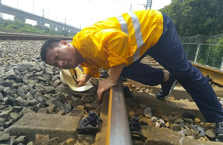 驕陽似火。鐵路軌道在烈日的暴曬下,鋼軌溫度達到了56.7度,遠遠望去,鐵路上熱浪滾滾。任廣思俯身跪在鋼軌頂面,臉孔緊貼鋼軌邊緣,檢查鋼軌的平直度。繼而,他站起身騎跨在鋼軌上,使勁擠了擠眼簾上的汗水,仔細查看鋼軌方向有無變化。“當氣溫達到或超過35度時我們就要進行巡查,檢查鋼軌的高低、方向狀態(tài)。”任廣思大喝幾口水指著鋼軌說:“正常狀態(tài)下,鋼軌是這樣筆直的,如果出現(xiàn)連續(xù)小彎,那就是有脹軌跡象,我們必須立即采取緊急措施,防止小彎進一步擴大。”