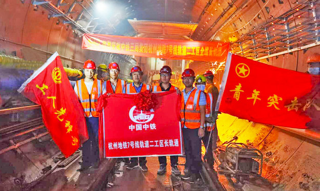 本站杭州訊(通訊員 姜博文 黃青山)  9月4日,隨著杭州地鐵7號(hào)線最后一個(gè)鋼軌接頭焊接完成,標(biāo)志著由中鐵三局線橋公司施工的杭州地鐵7號(hào)線軌道二工區(qū)全線軌通,提前2天實(shí)現(xiàn)工期目標(biāo),為后續(xù)“熱滑”施工奠定了堅(jiān)實(shí)基礎(chǔ)。