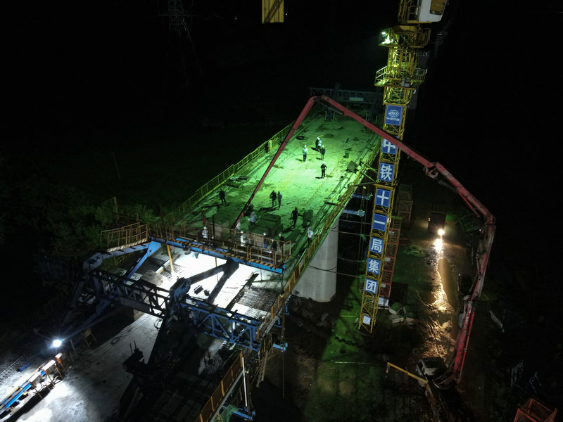 9月11日凌晨2點18分,在中鐵十一局常益長鐵路六標八曲河特大橋48米連續(xù)梁施工現(xiàn)場,隨著最后一車混凝土澆筑入槽,標志著該標段首座連續(xù)梁順利合龍。