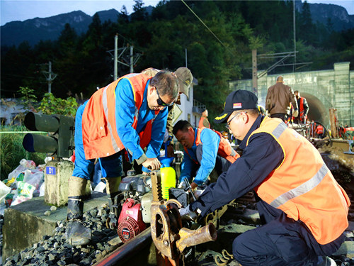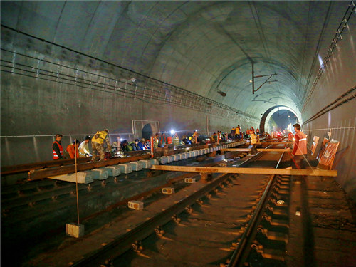 當天下午18時許,由一列列火車拉送到來的數(shù)百名建設者們依次抵達各自施工點,隨后在接到封鎖開始的指揮命令后,小站的重懷兩端岔區(qū)徹底地沸騰了起來。“搭接回流線,據(jù)軌拔砟,破底起道……”一系列工序均在激情高昂地號角聲中有序進行。